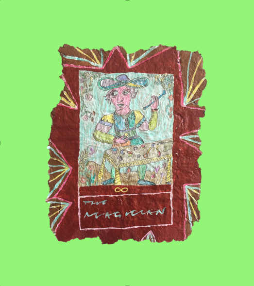 The Magician is creating in the present, but they are looking to the left, to the past. They are remembering their inner child.