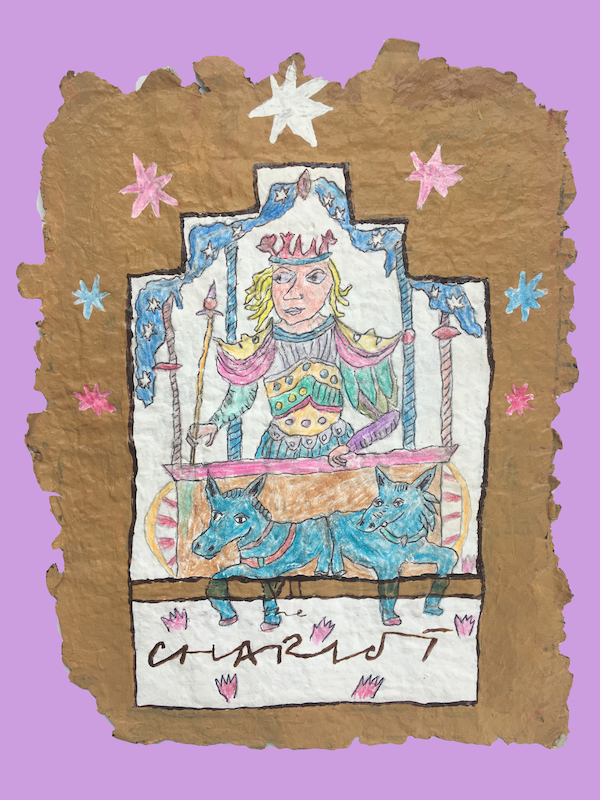To begin to know yourself you have to start trying new things, ways of dressing and expressing in the world, and to see yourself in different roles. The constructed, sheltered chariot speaks to this sense of finding of oneself in environments, roles, and clothes; the constructions of the ego.